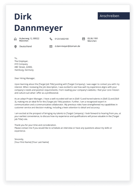 Überzeug mit Deinem professionellen Anschreiben und heb Deine Stärken hervor. In nur wenigen Klicks und mit optionalen KI-basierten Textbausteinen. Ganz einfach und schnell.